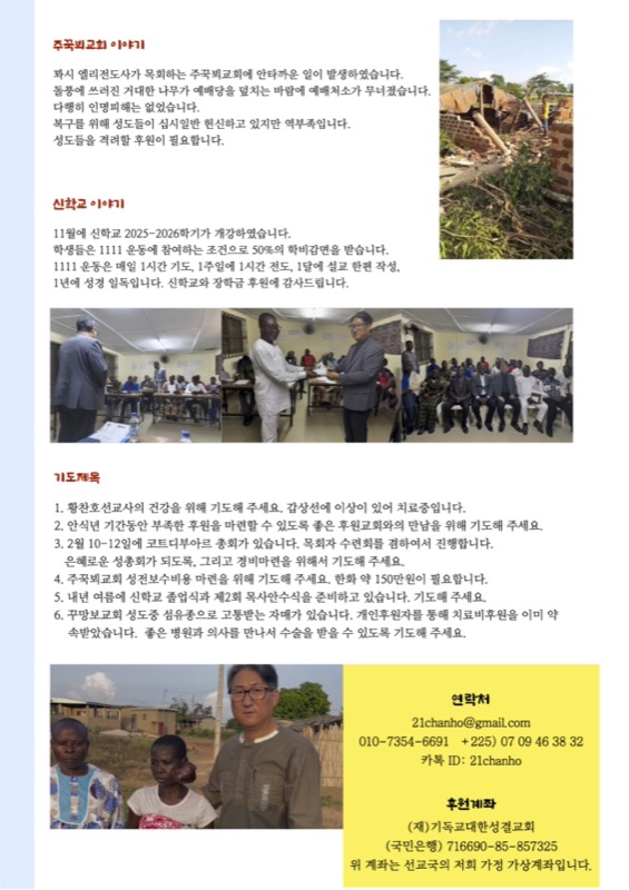 선교편지(12월) - 황찬호/김인경선교사(코트디브아르)